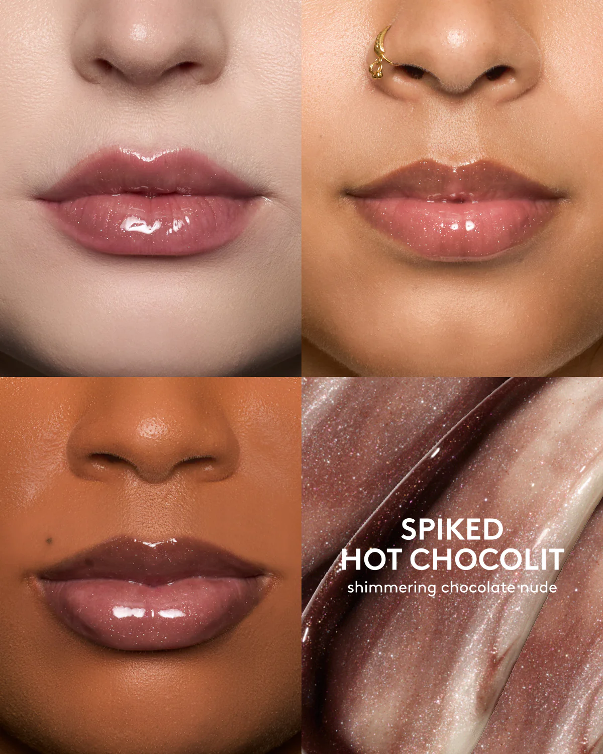 Gloss Bomb Stackz Layered Lip Luminizer in shade Sugar Plumz (shimmering rose) + Spiked Hot Chocolit (shimmering chocolate nude)
